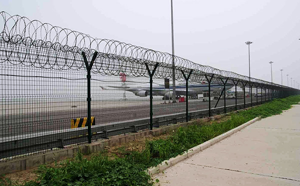 機場護欄網是安全防盜連接件和熱鍍鋅刀片刺籠組成是強度和安全防御性級別很高的隔離柵產品。近年來,機場護欄網被廣泛應用在機場,軍事基地等高安全場所。(如果在機場護欄網頂部加裝刀片刺絲、刀片刺繩后又很好的增強了安全防護性能。)機場護欄網產品規格:原料材質:國標Q19